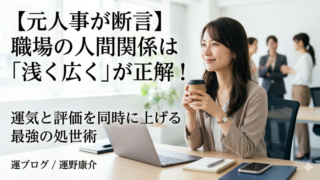 占い【元人事が断言】職場の人間関係は浅く広くが正解!運気と評価を同時に上げる最強の処世術 職場の人間関係に疲弊していませんか?会社で無理に親友を作る必要はありません。数千人の相談に乗ってきた元人事・運勢のプロが、他人の邪気から心を守り、運気と人事評価を同時に上げる「浅く広く」の最強の処世術を解説します。 2026.03.24占い